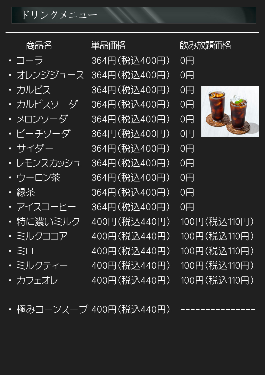 ソフトドリンク飲み放題
